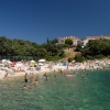 Plaža: 100-200 m, skalnata s ploščadmi za sončenje, prodnati zalivčki. Možnost najema sončnikov in ležalnikov.