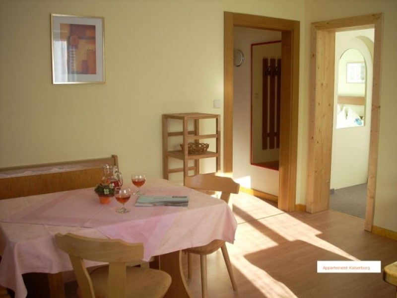 - 1/4-5 trisobni apartma Kaiserburg (60 m2): 2 x soba z zakonsko posteljo, dnevni prostor z jedilnim kotom in raztegljivim ležiščem, kuhinja, 2 x TWC, balkon.