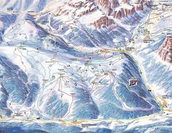Alta Badia je eden najlepših smučarskih središč v srcu Dolomitov. Višinska razlika se razteza od 1.500 m – 2.500 m. Povezano je s sistemom Sella Ronda. Zajema kraje Colfosco, Corvara, La villa, S. Cassiano, Pedraces.