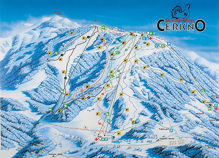 Lega: v mestu Cerkno, 10 km od smučišča, vozi brezplačen smučarski avtobus