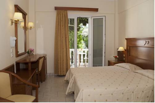 Lega: Hotel, obdan z idiličnim vrtom, na pobočju, polnem oljk, cipres in različnih cvetočih sredozemskih grmovnic, je primeren za vse tiste, ki si želijo miru, sprostitve in sprehodov po bližnji okolici. Do prve majhne prodnate plaže se pride po stopnicah, do glavne plaže zaliva Kerveli z možnostjo izposoje senčnikov in ležalnikov je 300 m, do mesta Samos, kamor vas lahko vsak dan trikrat, razen nedelje, odpelje brezplačni hotelski minibus, pa 10 km. Zaradi lege hotela je rezervacija možna le vključno z najemom avtomobila, ki ga prejmete in oddate na letališču.