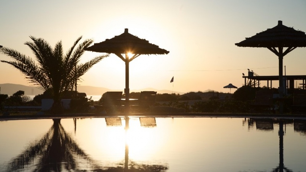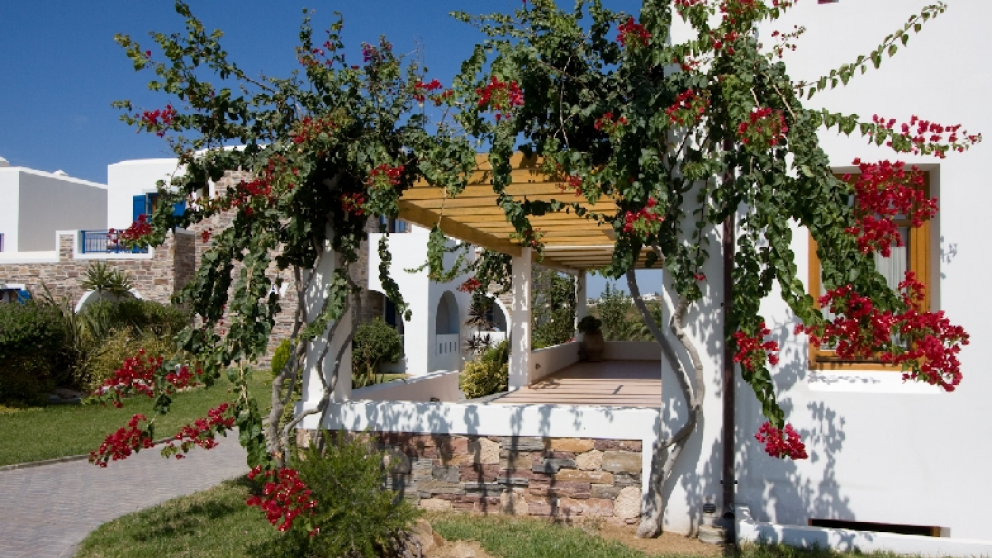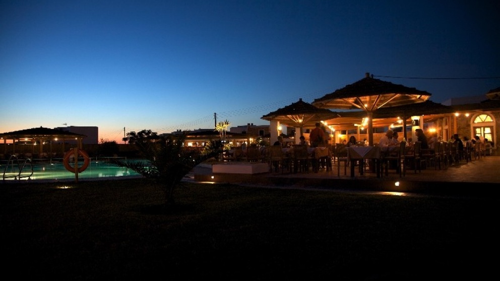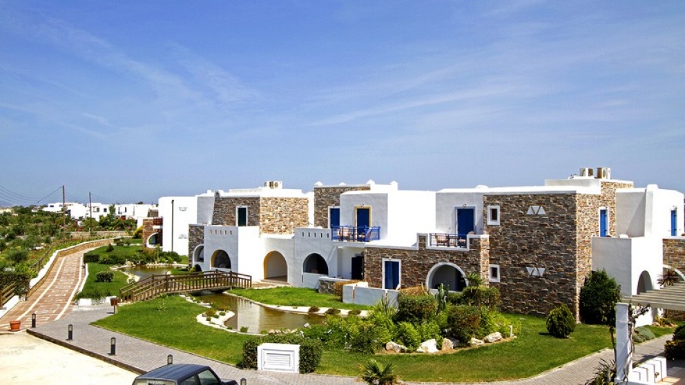 Hotelska ponudba: Sodoben, privlačen in v kikladskem slogu zgrajen hotel Plaza Beach je sestavljen iz glavne stavbe in več bungalovov. Je nedvomno pravi naslov za dopustnike, ki iščejo mir in sprostitev. Ima sprejemno dvorano z recepcijo, restavracijo s teraso, bar, TV-kotiček, internetni kotiček, fitnes in parkirišče. V lepo urejenem vrtu so še bazen, jacuzzi, otroški bazen, pool bar, ležalniki in senčniki. Za doplačilo so gostom na voljo še razne masaže, jacuzzi in savna.