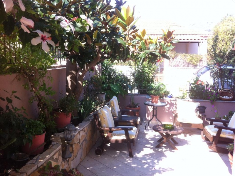 Klepet ob kavici s pogledom na bogenvilije