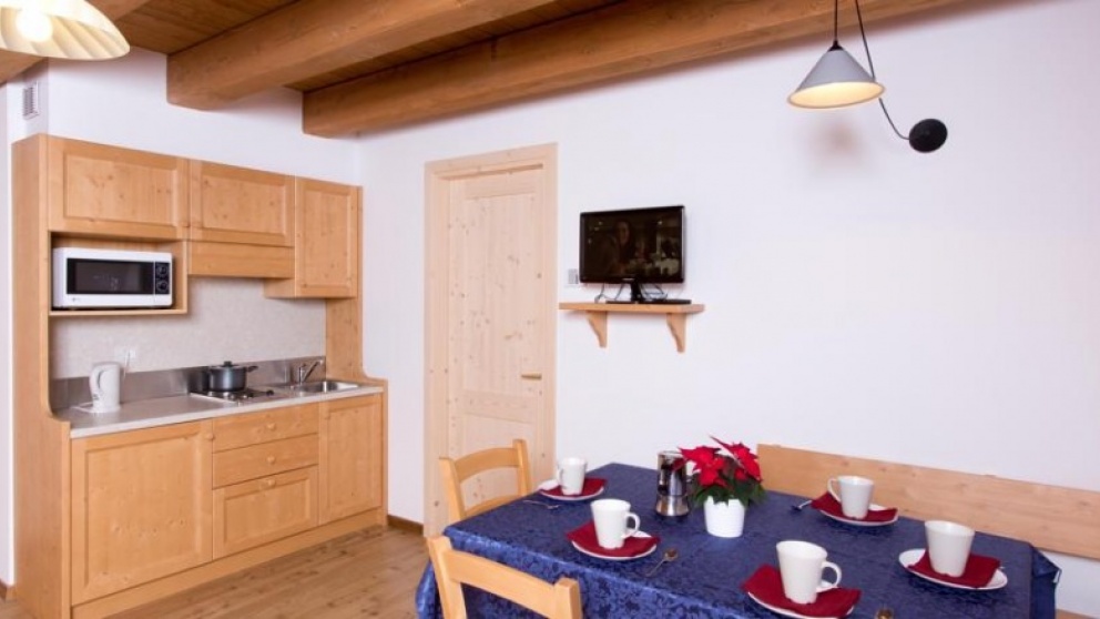 Lega: Nova apartmajska hiša, ki ima 38 apartamajev, leži 150 m od kabinske žičnice.