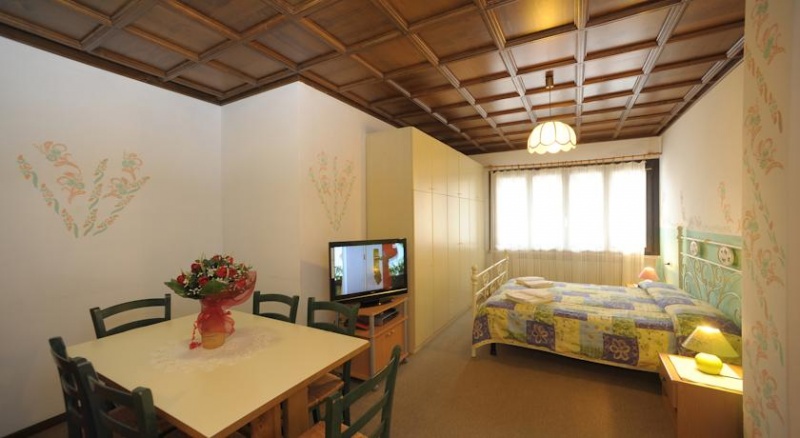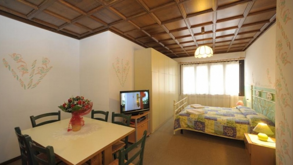 Opis: preprosta apartmajska hiša z izredno prostornimi apartmaji se nahaja med velikani Dolomitov.