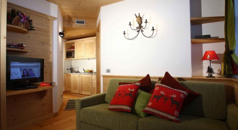 Apartmaji: opremljeni v tipičnem slogu, LCD-TV, brezžični dostop do interneta, sef, kuhinjska niša, kopalnica/WC.; (1/2 STUDIO): dnevni prostor z zakonskim ležiščem; (1/3 STUDIO): dnevni prostor z zakonskim ležiščem in kavčem za eno osebo; (1/4 STUDIO): dnevni prostor z zakonskim ležiščem in raztegljivim kavčem za dve osebi (1/4 APP): spalnica z zakonskim ležiščem, dnevni prostor z raztegljivim ležiščem za dve osebi; (1/5 APP): splanica z zakonskim ležiščem in enojnim ležiščem, dnevni prostor z raztegljivim ležiščem za dve osebi.